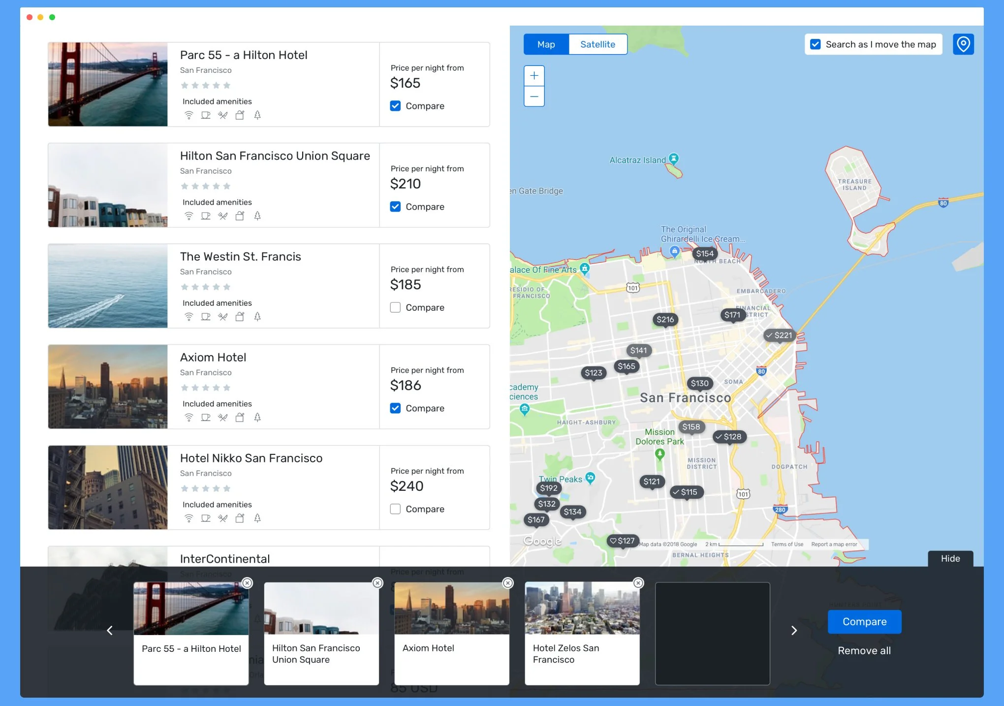 Prototype for comparing venues in FramerX and documentation for designers to use in the future.